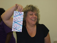 even criss-cross them.  press into an ink pad then print on tag.  think everyone had a good time getting inky and creamed!  all this fun happened at Maggie's Place here in Milford.